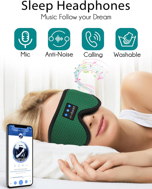 Sleep Mask with Bluetooth Headphones, Sleep Headphones Bluetooth Sleep Mask Breathable Sleeping Headphones for Side Sleepers Best Gift and Travel Essential (Green)